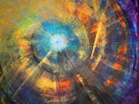 Ob der Urknall ein Gottesbeweis ist oder nicht, Tatsache ist es gab ihn.Auch wenn die Schöpfung dieser Unermesslichkeit für unsere Begrenztheitunfassbar ist, wir und das Leben sind das Kleinod des Universums. Nicht einmal das können wir schätzend begreifen.Größen 60x80cm bis 100x120cm, Acryl auf Leinwand.